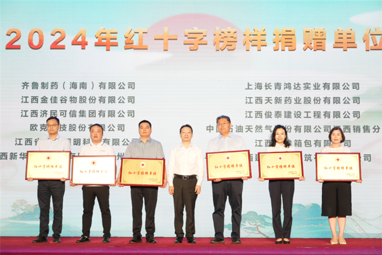 我市爱心企业江西天新药业股份有限公司荣获2024年江西省红十字捐赠榜样单位荣誉称号并登台领奖,是景德镇市唯一一家获此殊荣的企业。